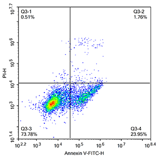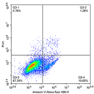 Jurkat细胞用紫外诱导凋亡后用Annexin V-Alexa Fluor 488 /PI双染流式分析图谱