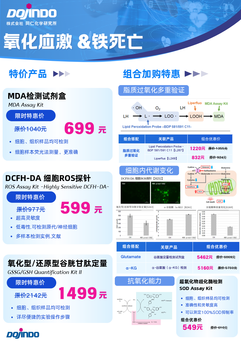 氧化应激、铁死亡、细胞凋亡、代谢、线粒体检测,多种明星产品一站式购齐,折扣低至单件「4.5折」「组合购买更享优惠」