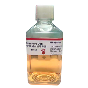 Opti-MEM减血清培养基是一种经过改良的 Minimal Essential Medium (MEM),能够使胎牛血清添加量减少至少 50%,而生长速率或 形态无变化。还推荐 Opti-MEM培养基与阳离子脂质体转染试剂(如 Lipo2000 试剂)配套使用。Opti-MEM培养基可用于各种悬浮 和贴壁的哺乳动物细胞,包括 Sp2、AE-1、CHO、BHK-21、HEK 和原代成纤维细胞。针对广泛的细胞培养应用,提供了多种组分的 Opti-MEM改良培养基。