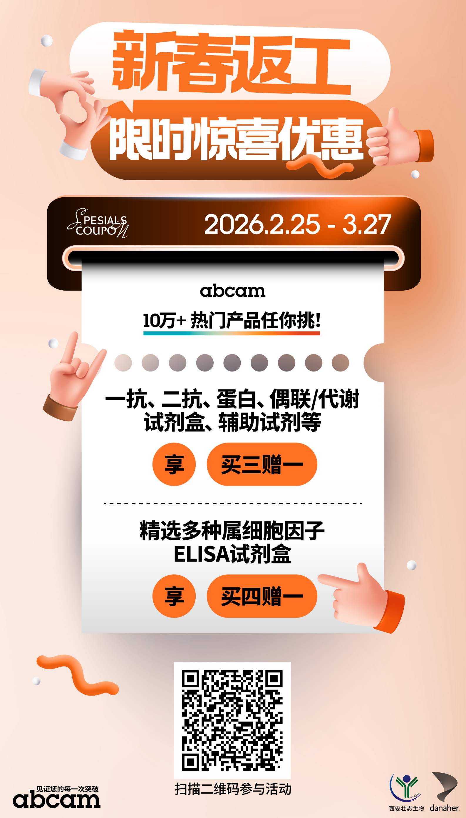 2026年2月25日-3月27日,Abcam 限时 10万+ 产品参与新春返工活动
